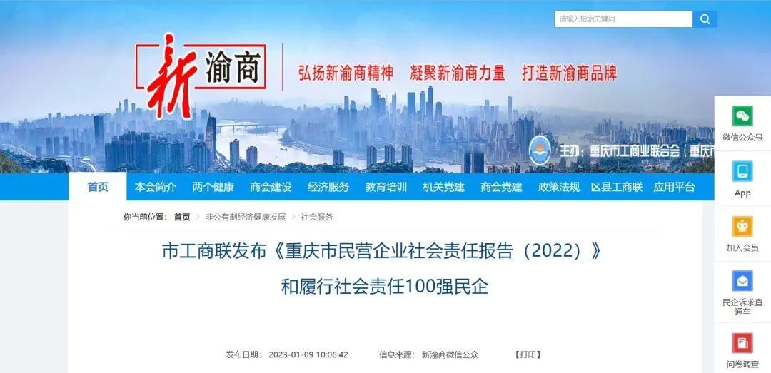 1月6日,重慶市工商聯(lián)發(fā)布《重慶市民營(yíng)企業(yè)履行社會(huì)責(zé)任報(bào)告(2022)》,并揭曉2022重慶市民營(yíng)企業(yè)社會(huì)責(zé)任100強(qiáng)榜單。榜單中,江津區(qū)6家有民營(yíng)企業(yè)上榜,新西亞鋁業(yè)集團(tuán)位列其中。