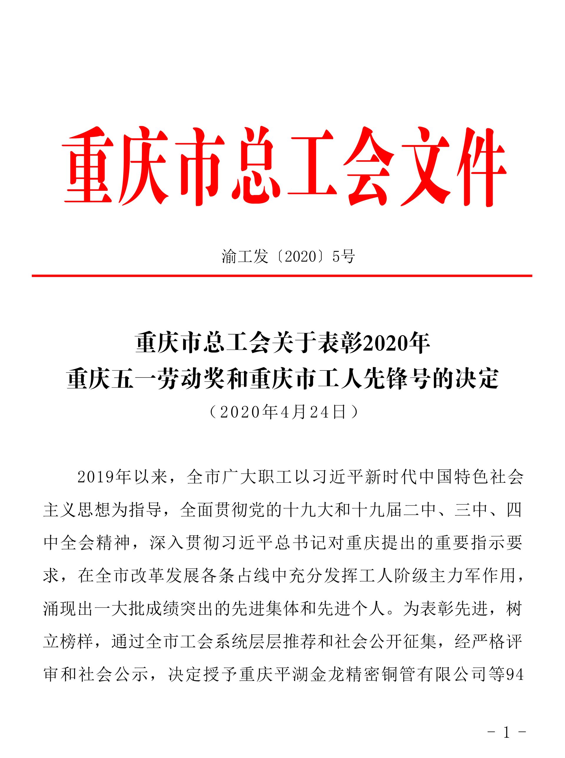 近日,重慶市總工會發布了《關于表彰2020年重慶五一勞動獎和重慶市工人先鋒號的決定》,表彰一批為全市經濟建設和社會發展以及抗擊新冠肺炎疫情工作中做出突出貢獻的先進集體和先進職工,重慶新西亞鋁業(集團)股份有限公司被授予“重慶五一勞動獎狀”。