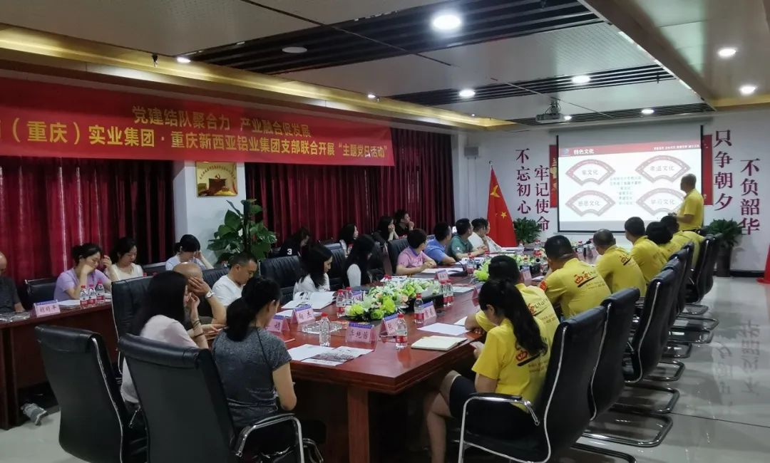 7月10日,正南(重慶)實業有限公司黨支部(以下簡稱正南實業)支部書記鐘馳率支部黨員、入黨積極分子及群眾員工一行23人,走進重慶新西亞鋁業(集團)股份有限公司(以下簡稱新西亞鋁業集團)與公司黨支部聯合開展“黨建結隊聚活力、產業融合促發展”主題黨日活動,活動主要圍繞基層企業黨建工作與企業文化建設兩個方面開展,其目的是共同提升雙方在產業融合工作方面的共享與共建。