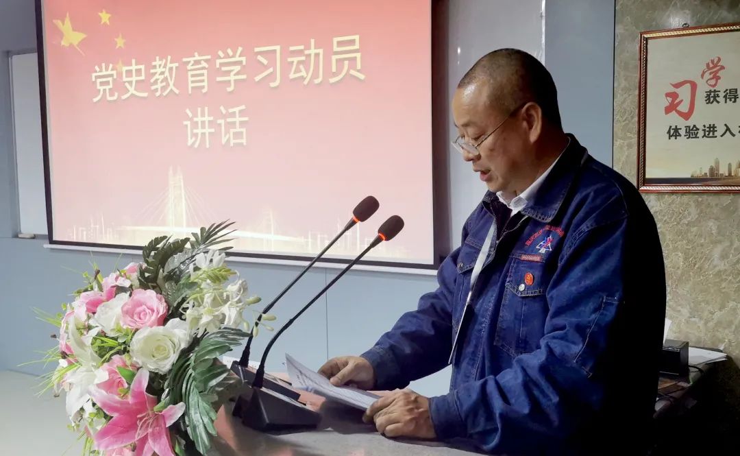 受黨支部書記、總經(jīng)理劉斌的委托,經(jīng)審委員、集團事業(yè)部執(zhí)行總經(jīng)理周雄同志作了學(xué)習(xí)動員講話,講話中明確開展黨史學(xué)習(xí)教育: