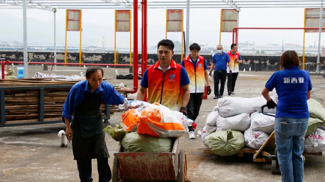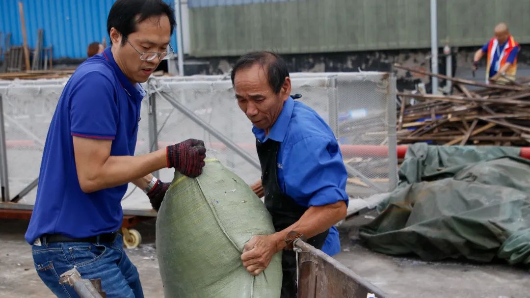 此次義務勞動內容是清理生產廠房樓頂施工區散亂堆放的鋼管、鋼架、管件、木條、石子等施工物料和垃圾,分類整齊堆放可用的物料,清運不可用的廢棄物料和垃圾,改善廠區風貌。