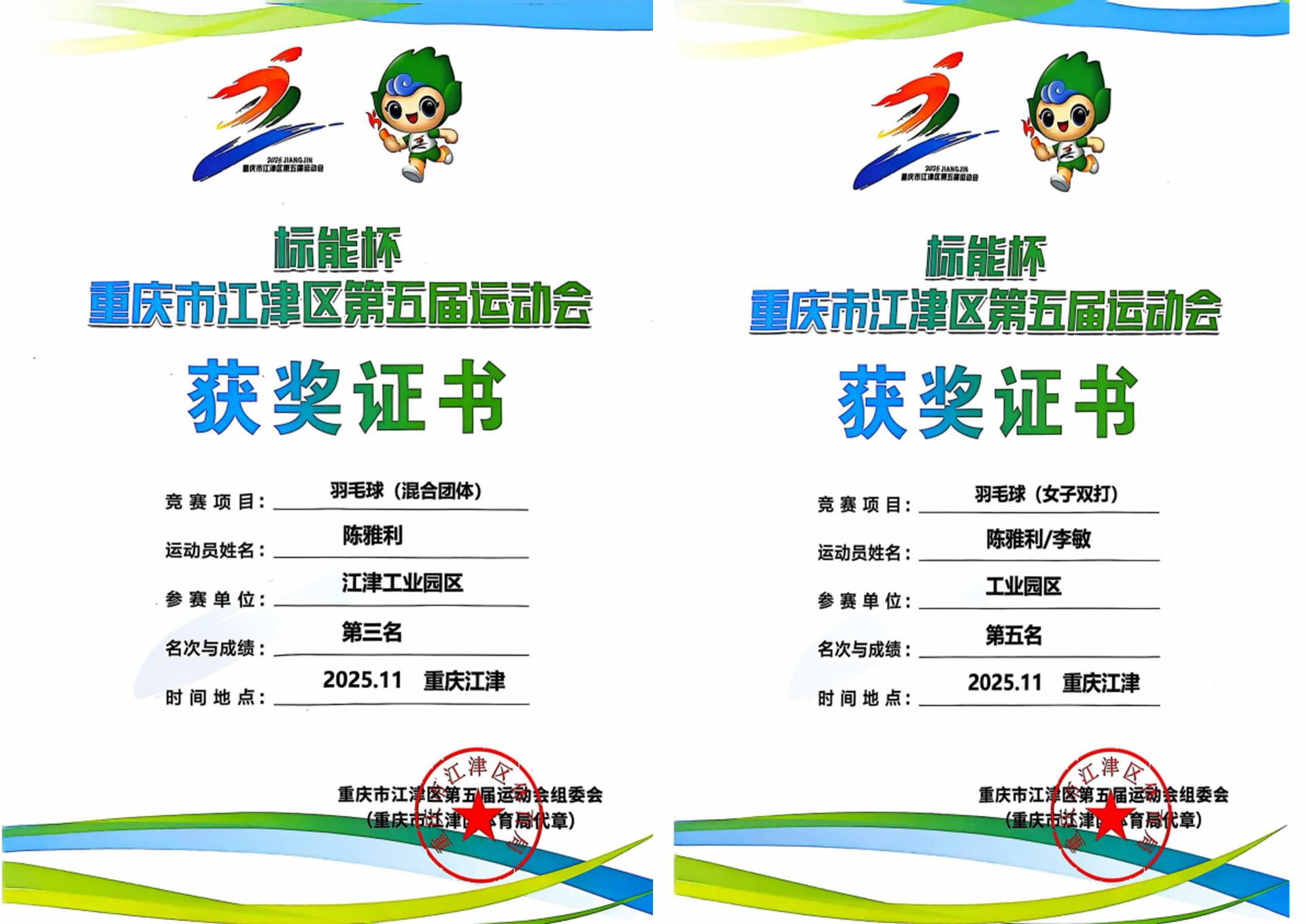 這份榮譽的背后,是歷時兩個月的激烈角逐。在9月至11月舉行的江津區(qū)第五屆“標(biāo)能杯”運動會中,陳雅利同志作為工業(yè)園區(qū)代表團的一員,與隊友并肩作戰(zhàn)。她秉持著“特別能吃苦、特別能挑戰(zhàn)、特別能爭先”的拼搏精神,一路過關(guān)斬將,最終獲得羽毛球混合團體第三名、女子雙打第五名的成績,為工業(yè)園區(qū)代表團贏得全區(qū)團體總分第三名的優(yōu)異成績貢獻了自己的一份力量。