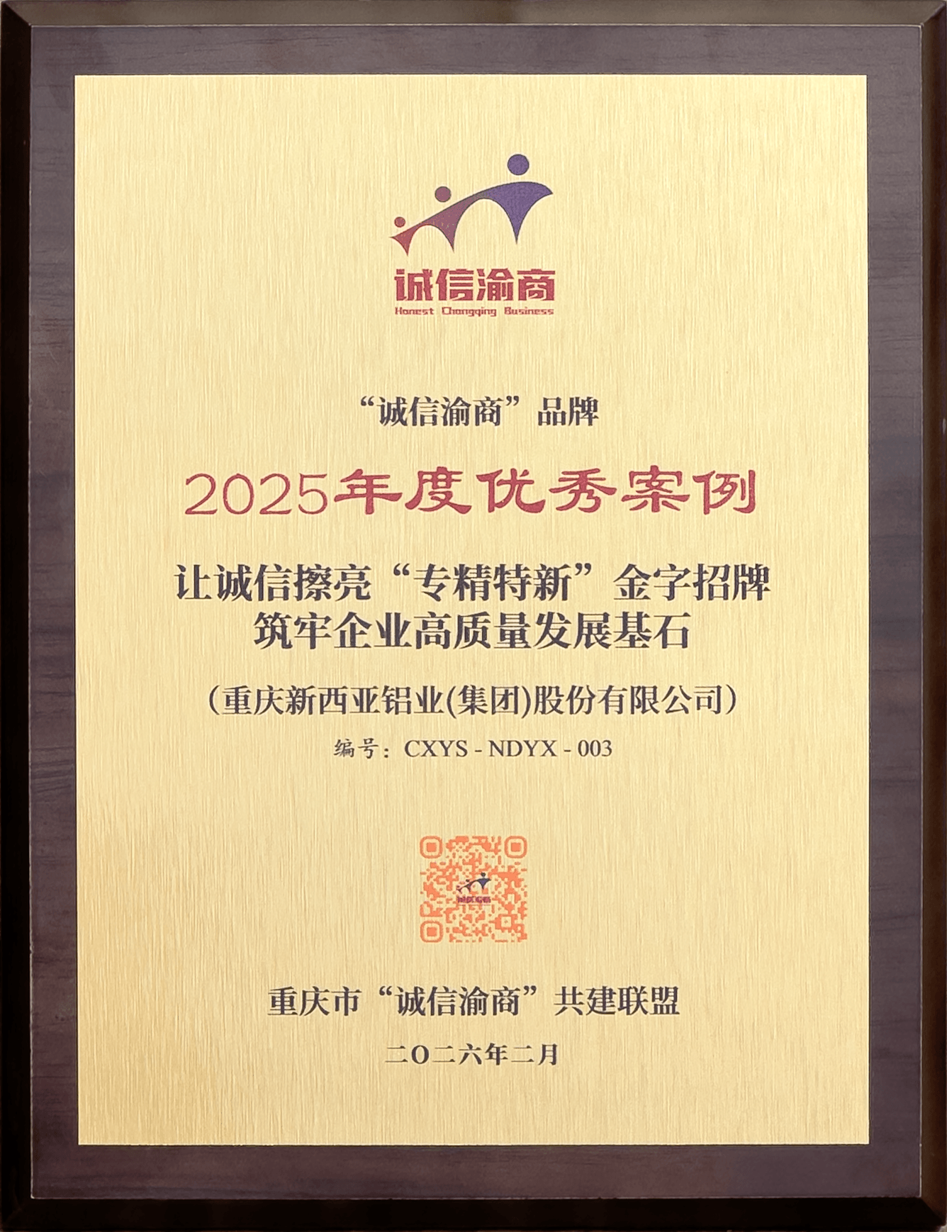 兩項殊榮的獲得,是新西亞鋁業集團發展歷程中的璀璨一筆,更是邁向高質量發展的新起點。未來,新西亞鋁業集團將繼續秉持“以誠鑄魂,向新而行”的理念,以合規為舵、誠信為帆,持續深化誠信體系建設,擦亮“誠信渝商”金字招牌,為重慶民營經濟的騰飛貢獻堅實力量。